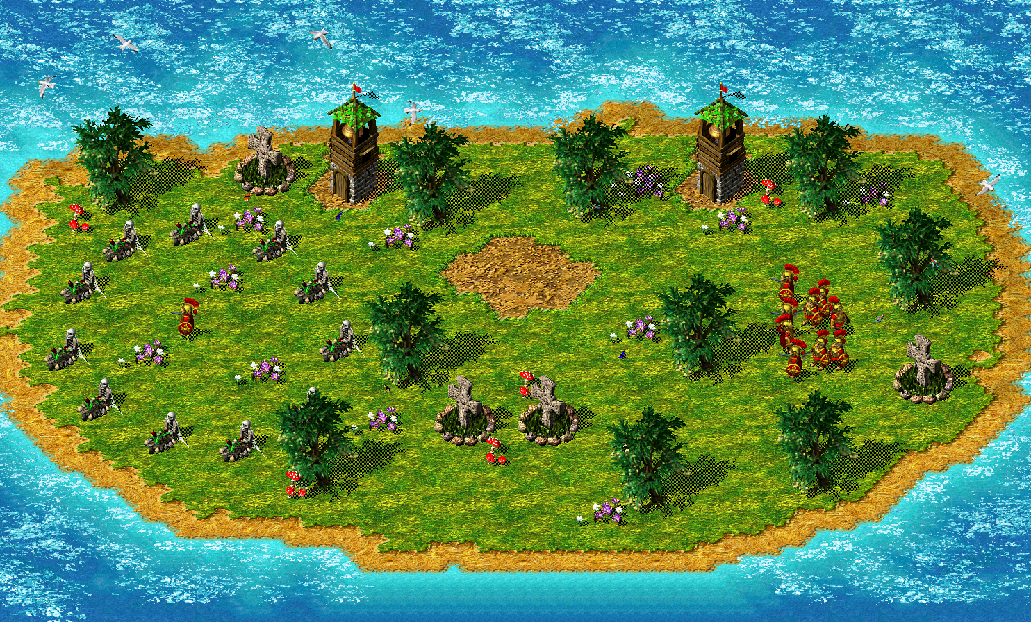 - Mehr extra Truppen sobald jeder Spieler einen Tempel gebaut abhängig von der Schwierigkeit ( floor(3 + (0.5 * Schwierigkeitslevel) )